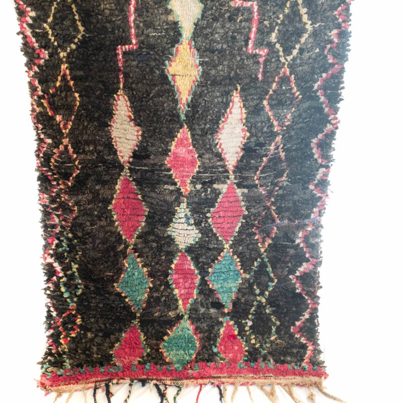Teppiche wie unser marokkanischer Vintage Teppich BLACK nennt man in Marokko Boucherouite-Teppiche. Diese Art von Teppichen werden aus recycelten Stoff- und Wollresten per Hand geknรผpft. Jeder Teppich ist ein Einzelstรผck und ein einmaliges Kunstwerk, das sowohl auf dem Boden als auch als Wanddekoration ein absoluter Hingucker in eurem Zuhause ist. Dieses Teppichmodell aus Marokko ist 1,20m breit und ca. 2,00m lang. Damit passt der Vintage Teppich aus Marokko fast รผberall hin und setzt einen tollen farbigen Akzent.